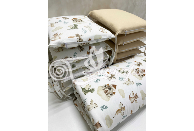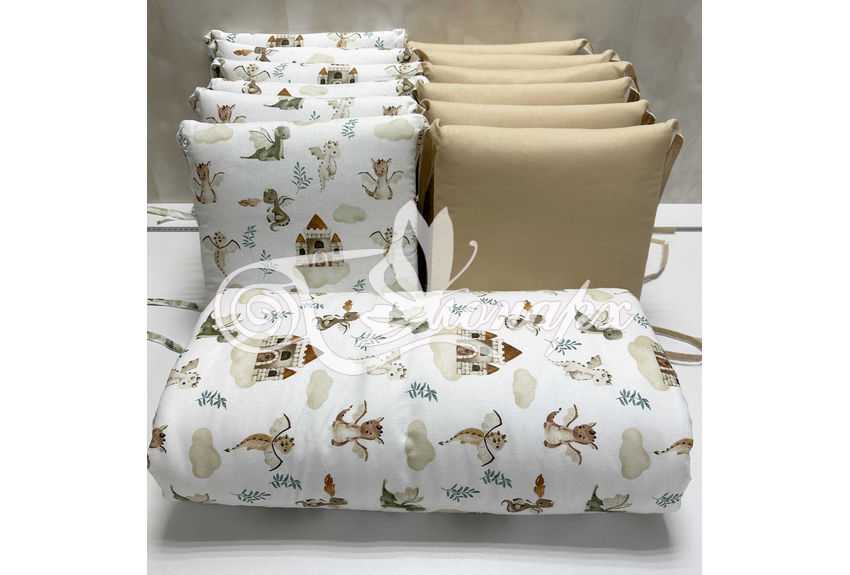 Бортик составной: 12 подушек 31х34 см на замочках упакованы в сумку-переноску.