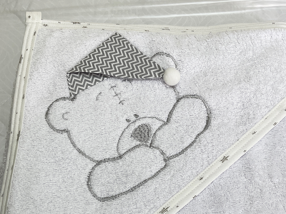 Полотенце с капюшоном и рукавичкой Вышивка (молочный)
