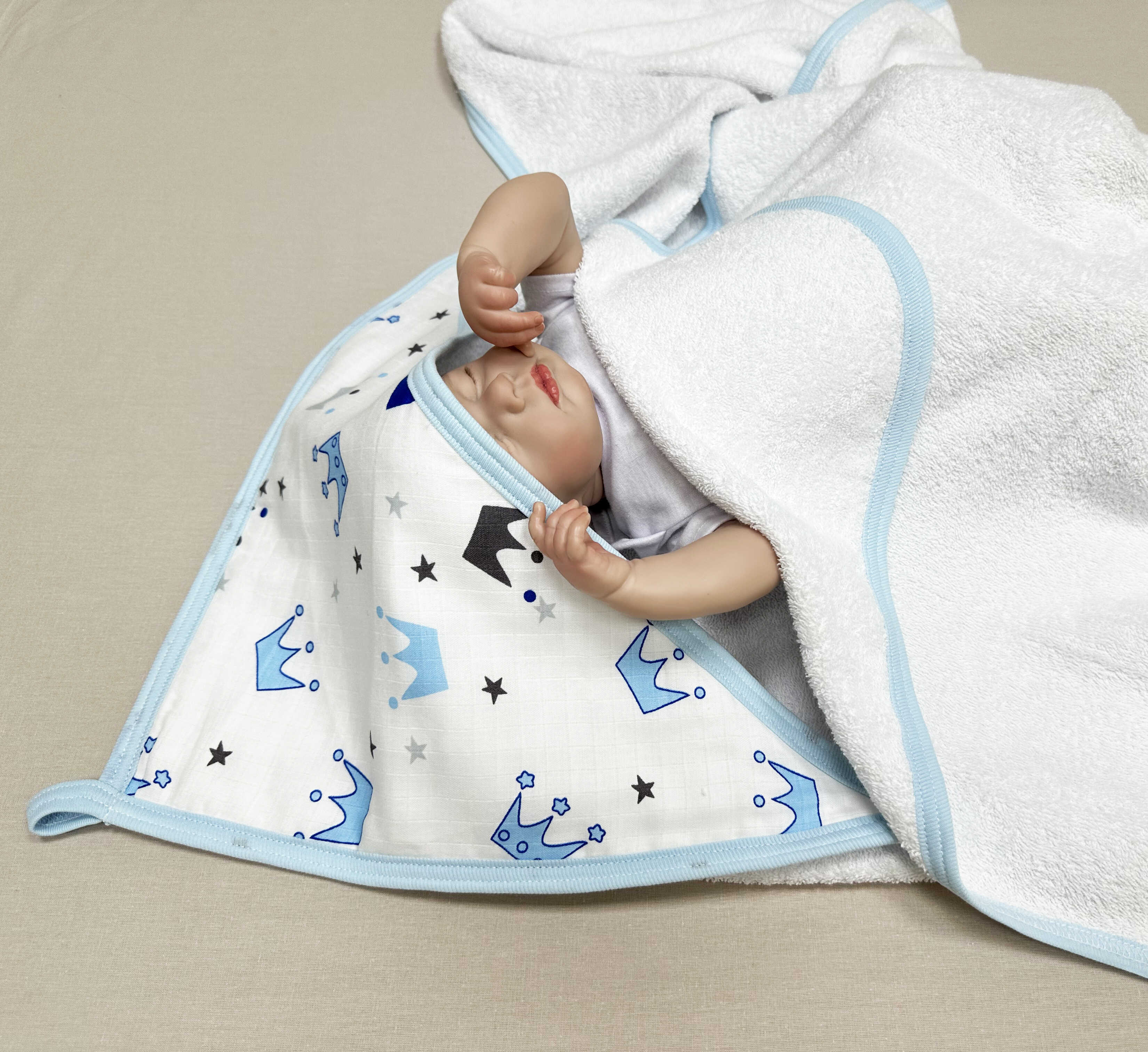 Как мы уже упоминали (но это действительно очень важно), вы всегда должны держать голову ребенка сухой и теплой, чтобы полотенце для новорожденных с капюшоном действительно было идеальным, тканью для детского полотенца лучше выбрать хлопок.