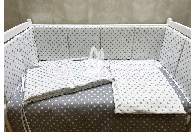 Бортики СО СЪЕМНЫМИ ЧЕХЛАМИ в кроватку: защитят Вашего малыша от ушибов, сквозняков, солнечных лучей и не дадут малышу запутаться в прутьях кроватки. - Простыня на резинке 60х120 см (подходит для стандартной кроватки)