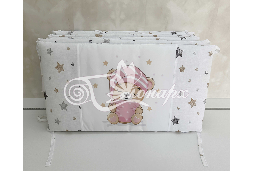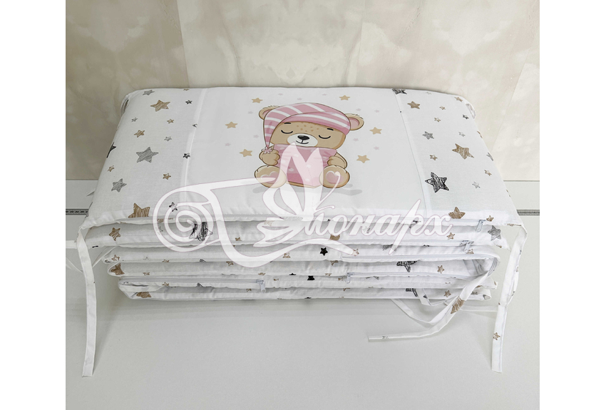 Бортики СО СЪЕМНЫМИ ЧЕХЛАМИ в кроватку: защитят Вашего малыша от ушибов, сквозняков, солнечных лучей и не дадут малышу запутаться в прутьях кроватки. - Простыня на резинке 60х120 см (подходит для стандартной кроватки)