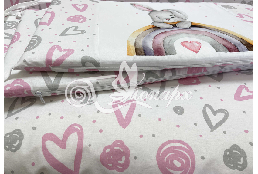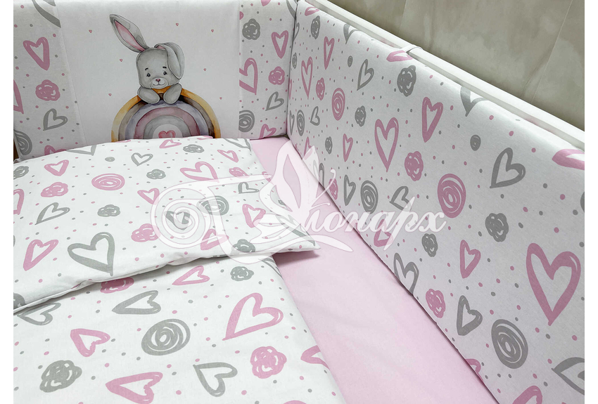 Бортики СО СЪЕМНЫМИ ЧЕХЛАМИ в кроватку: защитят Вашего малыша от ушибов, сквозняков, солнечных лучей и не дадут малышу запутаться в прутьях кроватки. - Простыня на резинке 60х120 см (подходит для стандартной кроватки)