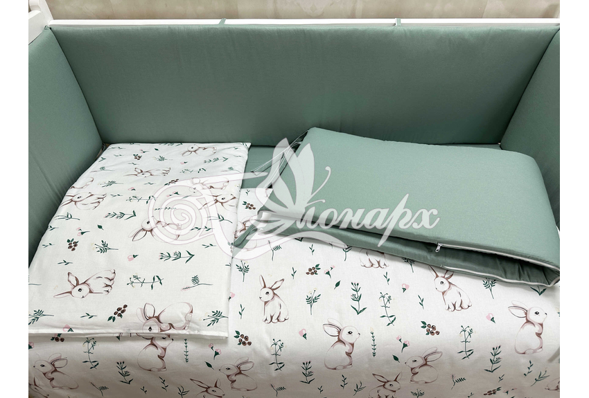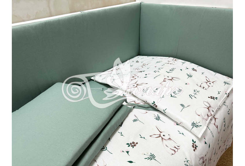 Бортики СО СЪЕМНЫМИ ЧЕХЛАМИ в кроватку: защитят Вашего малыша от ушибов, сквозняков, солнечных лучей и не дадут малышу запутаться в прутьях кроватки. - Простыня на резинке 60х120 см (подходит для стандартной кроватки)