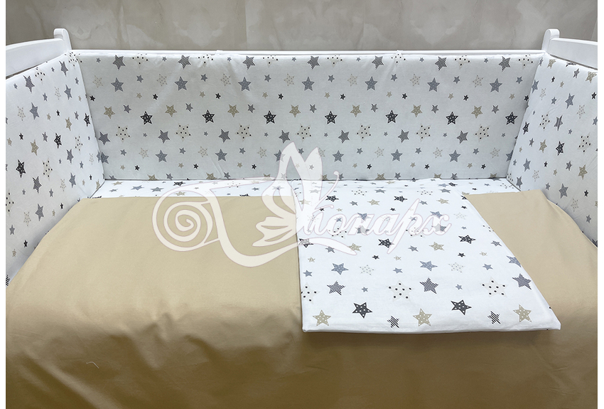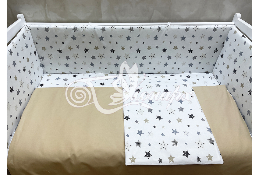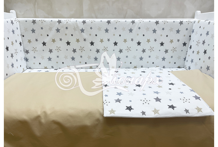 Бортики СО СЪЕМНЫМИ ЧЕХЛАМИ в кроватку: защитят Вашего малыша от ушибов, сквозняков, солнечных лучей и не дадут малышу запутаться в прутьях кроватки. - Простыня на резинке 60х120 см (подходит для стандартной кроватки)
