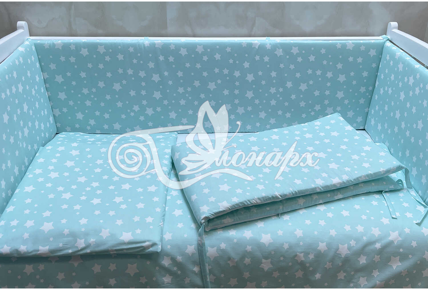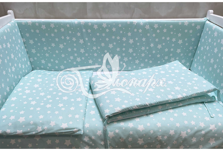 Бортики СО СЪЕМНЫМИ ЧЕХЛАМИ в кроватку: защитят Вашего малыша от ушибов, сквозняков, солнечных лучей и не дадут малышу запутаться в прутьях кроватки. - Простыня на резинке 60х120 см (подходит для стандартной кроватки)