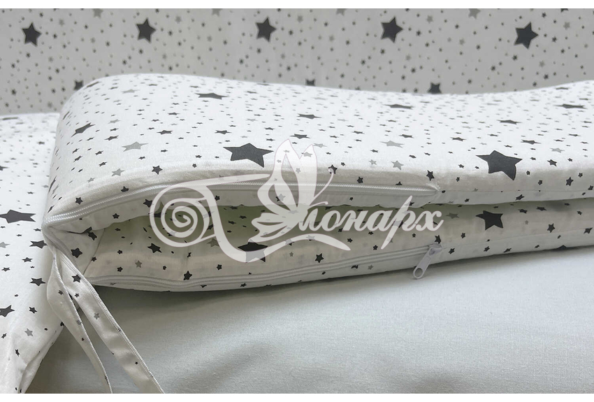 Бортики СО СЪЕМНЫМИ ЧЕХЛАМИ в кроватку: защитят Вашего малыша от ушибов, сквозняков, солнечных лучей и не дадут малышу запутаться в прутьях кроватки. - Простыня на резинке 60х120 см (подходит для стандартной кроватки)