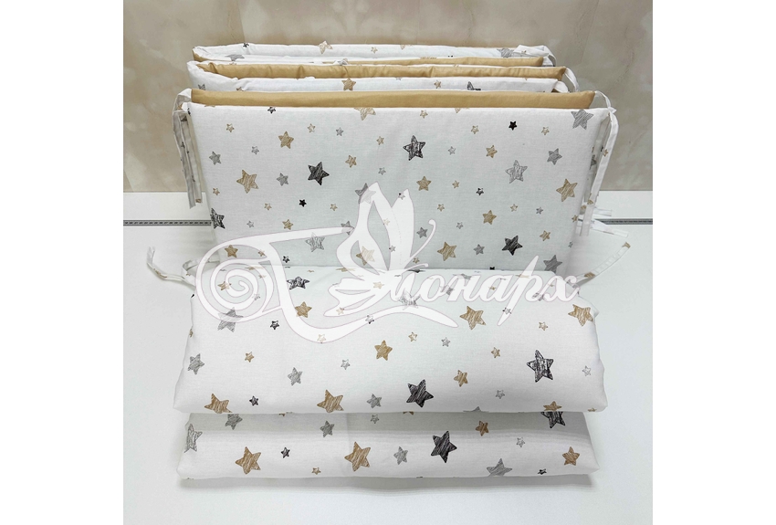 Бортики СО СЪЕМНЫМИ ЧЕХЛАМИ в кроватку: защитят Вашего малыша от ушибов, сквозняков, солнечных лучей и не дадут малышу запутаться в прутьях кроватки. - Простыня на резинке 60х120 см (подходит для стандартной кроватки)