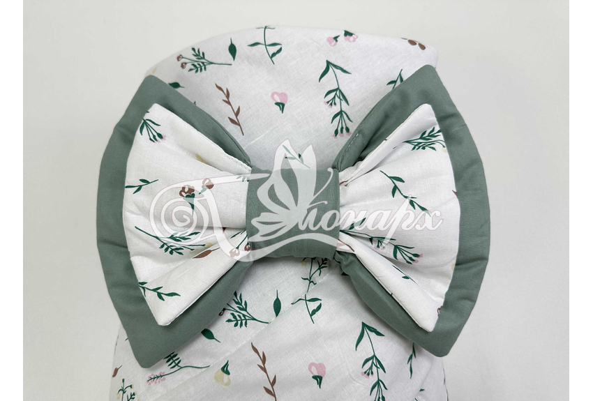 ​Конверт фиксируется поясом на резинке с бантом.