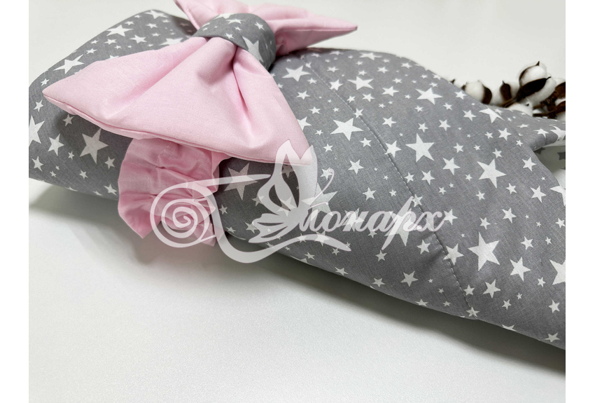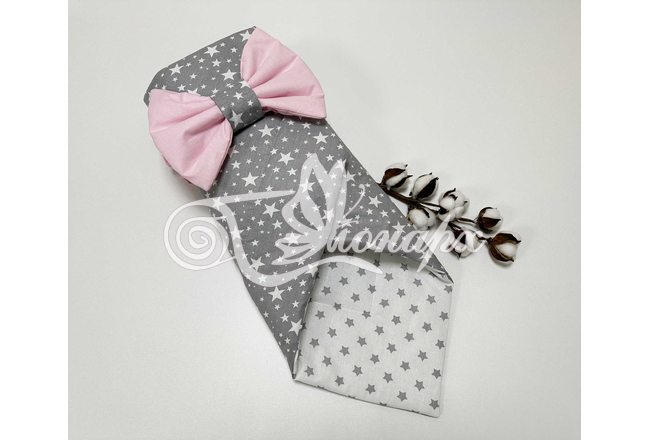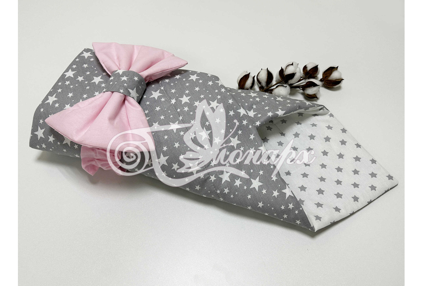 ​Конверт фиксируется поясом на резинке с бантом.
