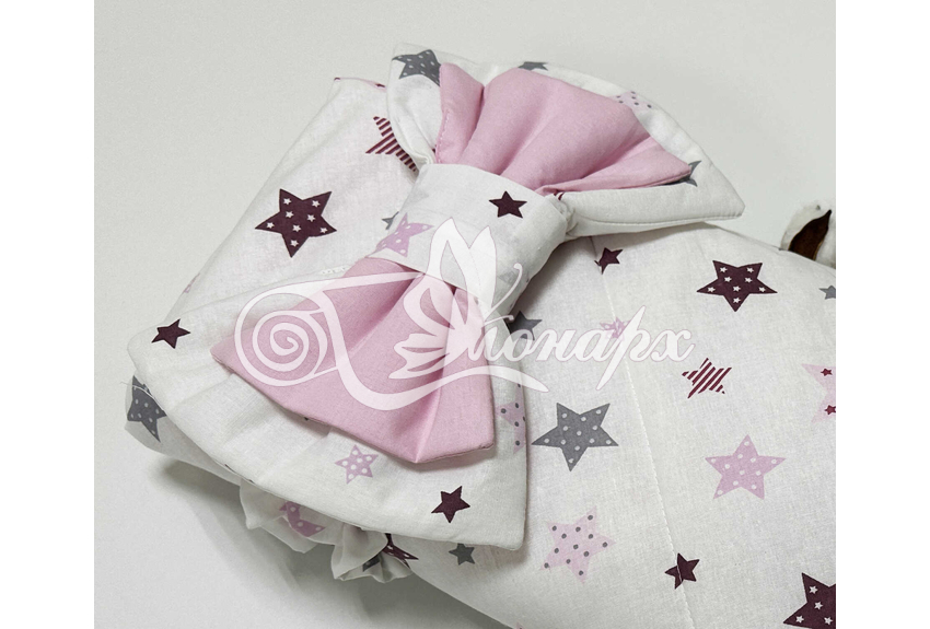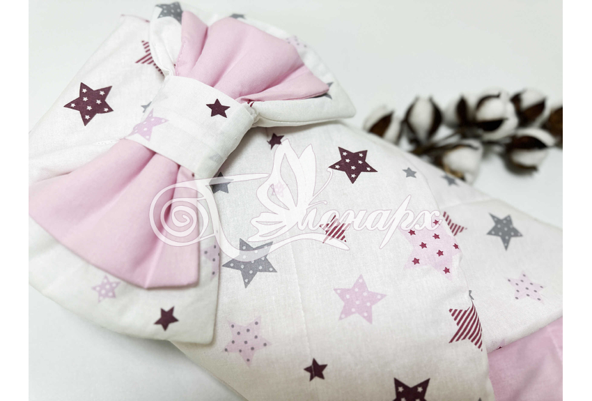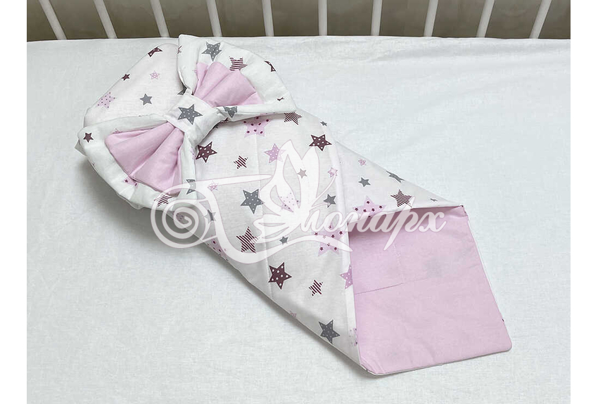​Конверт фиксируется поясом на резинке с бантом.