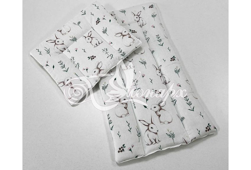 Каждое изделие из набора простегано, матрасик и подушка обработаны декоративным кантом.