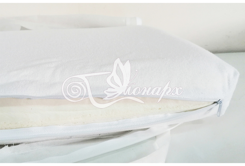 Чехол съёмный на замке, изготовлен из хлопчатобумажной ткани с водонепроницаемой пропиткой. Специальный дышащий материал обеспечивает естественную циркуляцию воздуха, комфортную температуру и безопасность. Не пропускает влагу, тем самым подушка не будет в процессе использования впитывать влагу, следовательно срок службы изделия увеличивается в несколько раз.