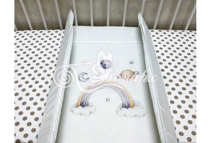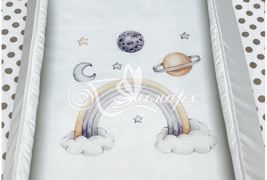Бортики сгибающиеся, выполняют защитную функцию. Изделие предназначено для малышей с рождения до годика, выполнено из плащевой ткани, наполнитель волтекс.