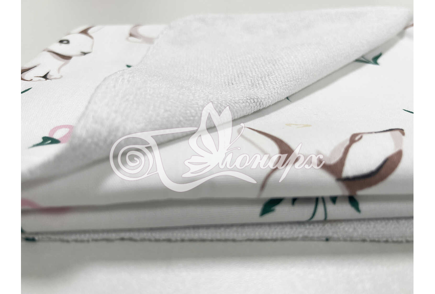 • Верхний слой – мулитон (изготовлена из - мягкой махры и непромокаемого слоя ПВХ). Благодаря такому строению на пеленке комфортно лежать (в отличие от клеенчатого или полиэтиленового непромокаемого слоя).
