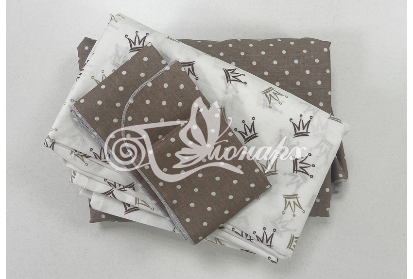 ширина - 137 см + 24 см на рюши (по 12 см на одну сторону). - Занавески с завязками (по 4 завязки на каждой занавеске) на переднюю сторону кроватки 2 шт.:
