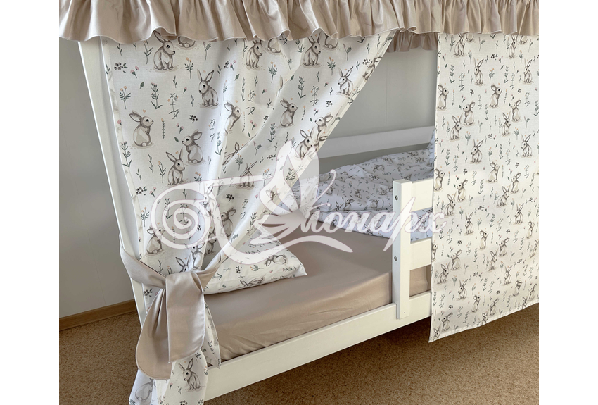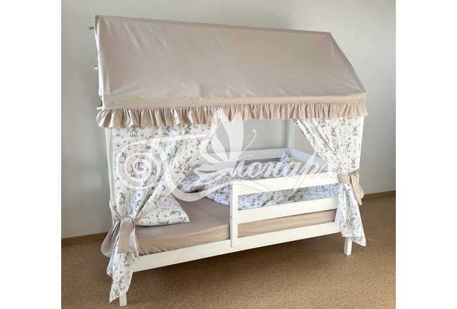 Крыша и шторы для кроватки домика ТД-28 купить в Омске.Теги: комплект в кроватку домик, текстиль для домика, крыша для домика