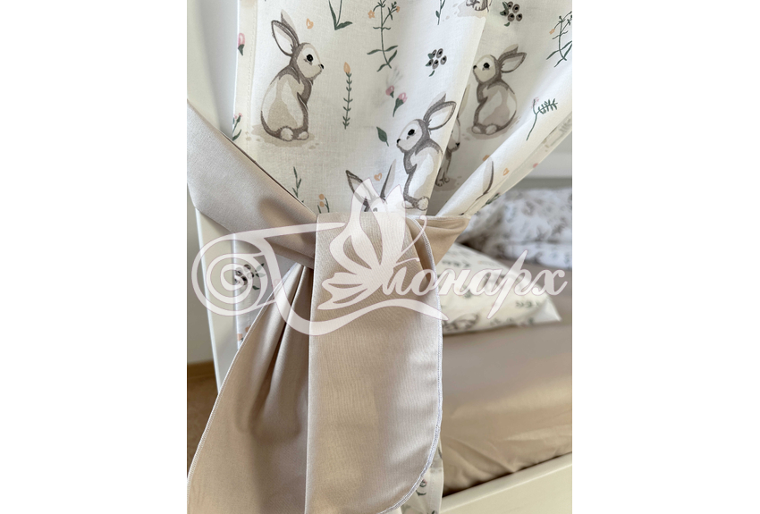 ширина - 82 см. - Занавески с завязками (по 4 завязки на каждой занавеске) на боковые стороны кроватки 2 шт.: