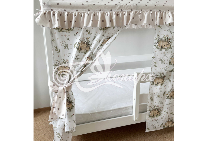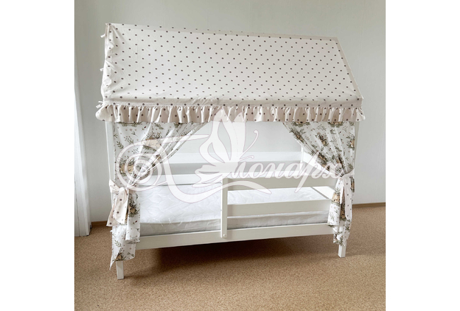 Крыша и шторы для кроватки домика ТД-42 купить в Омске.Теги: комплект в кроватку домик, текстиль для домика, крыша для домика