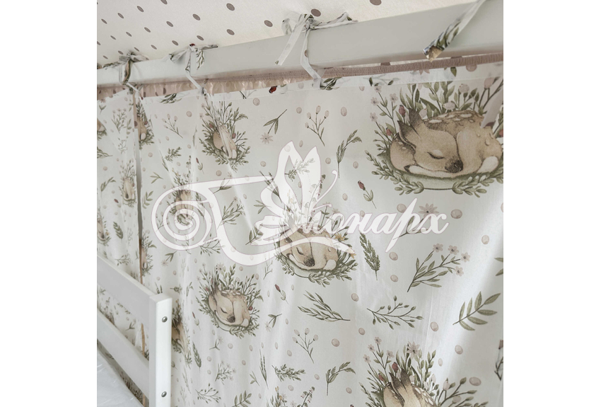 - Крыша текстильная на завязках (10 завязок) для кроватки домика: