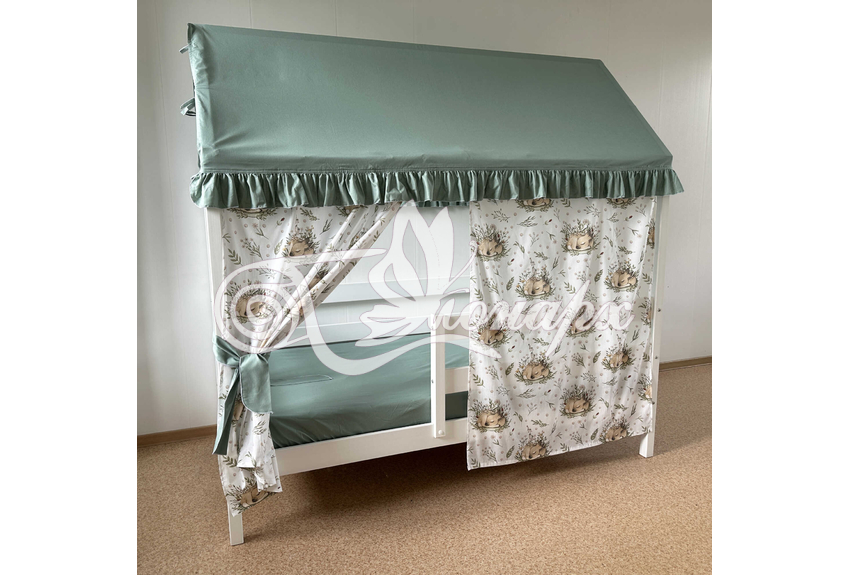 Крыша и шторы для кроватки домика ТД-43 купить в Омске.Теги: комплект в кроватку домик, текстиль для домика, крыша для домика