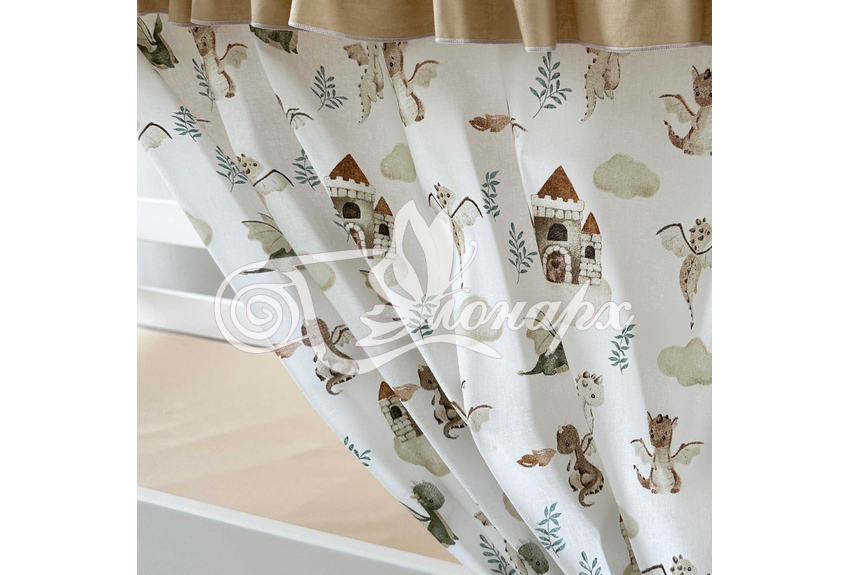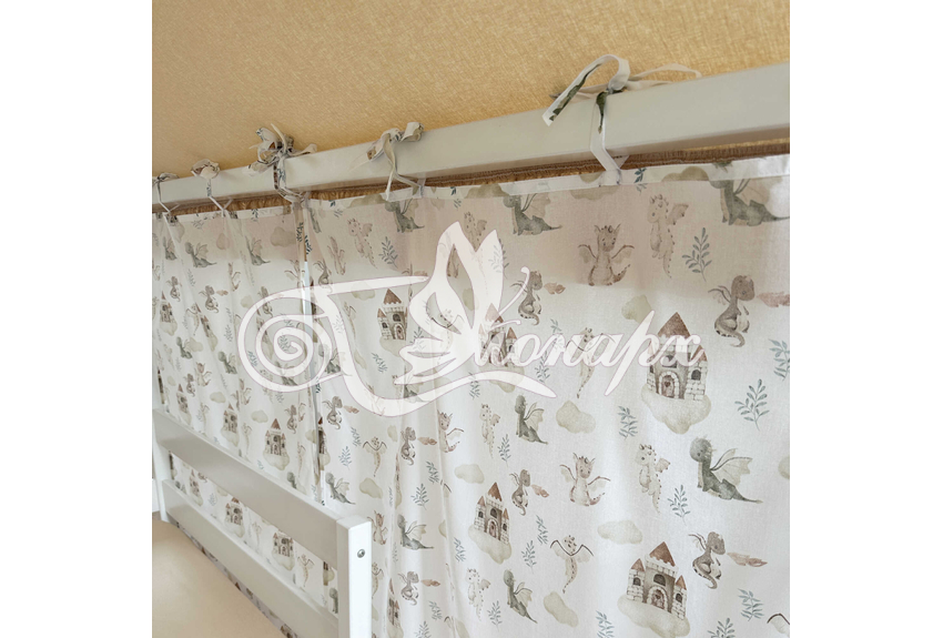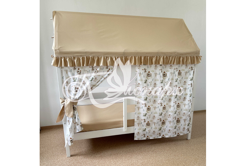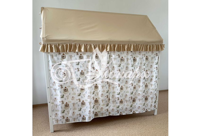 Крыша и шторы для кроватки домика ТД-45 купить в Омске.Теги: комплект в кроватку домик, текстиль для домика, крыша для домика