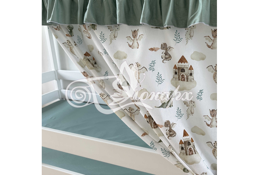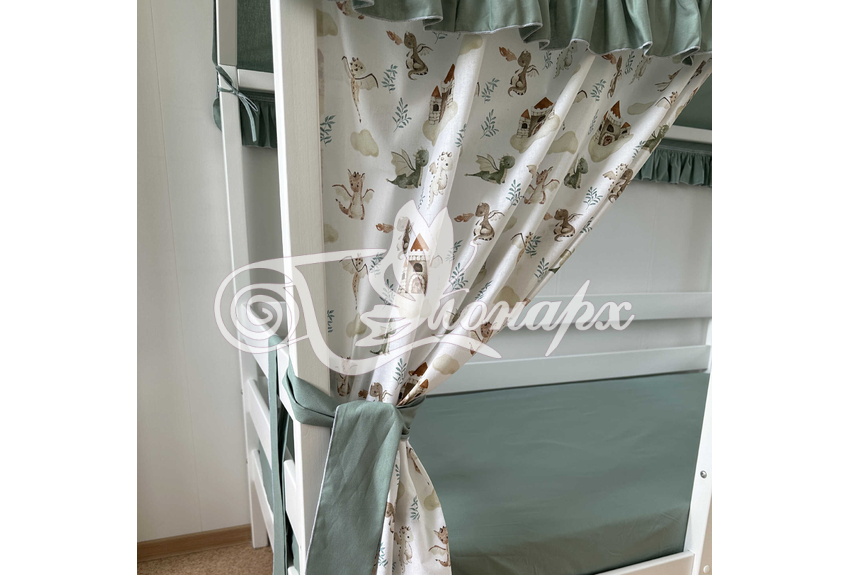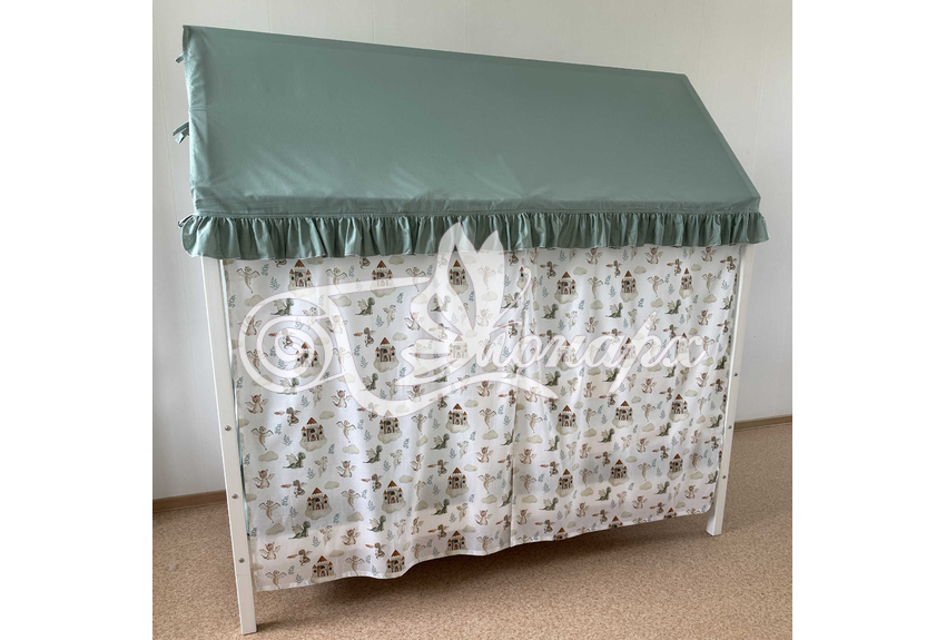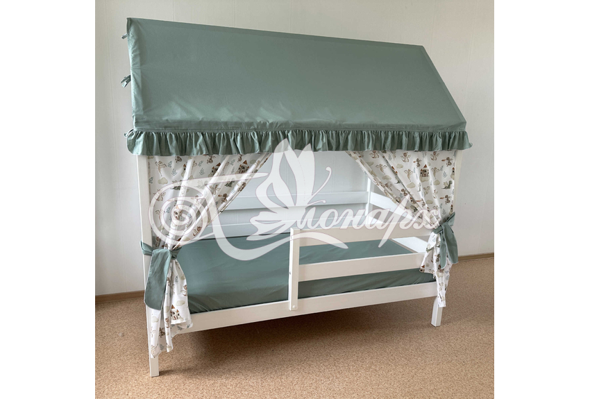 Крыша и шторы для кроватки домика ТД-47 купить в Омске.Теги: комплект в кроватку домик, текстиль для домика, крыша для домика