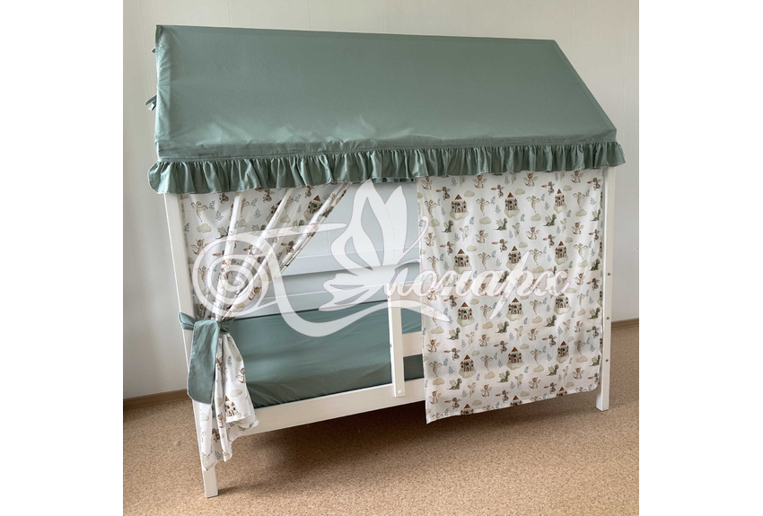 - Крыша текстильная на завязках (10 завязок) для кроватки домика: