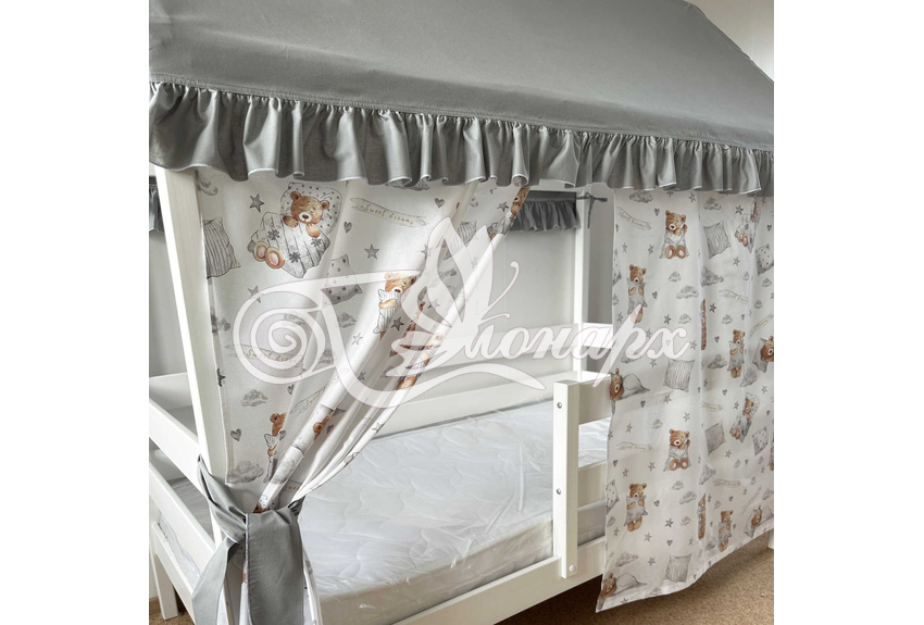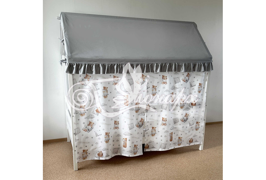 Крыша и шторы для кроватки домика ТД-49 купить в Омске.Теги: комплект в кроватку домик, текстиль для домика, крыша для домика