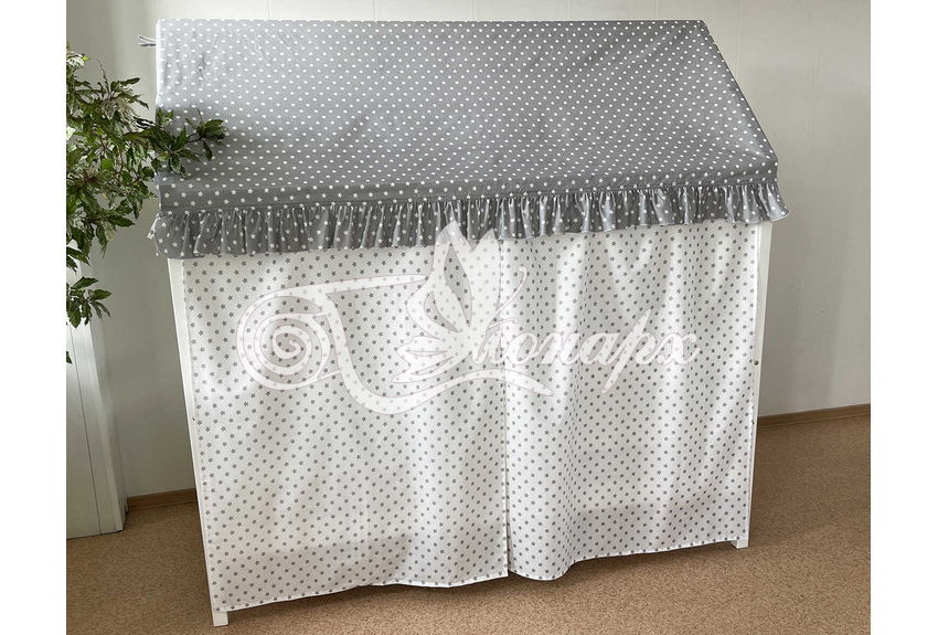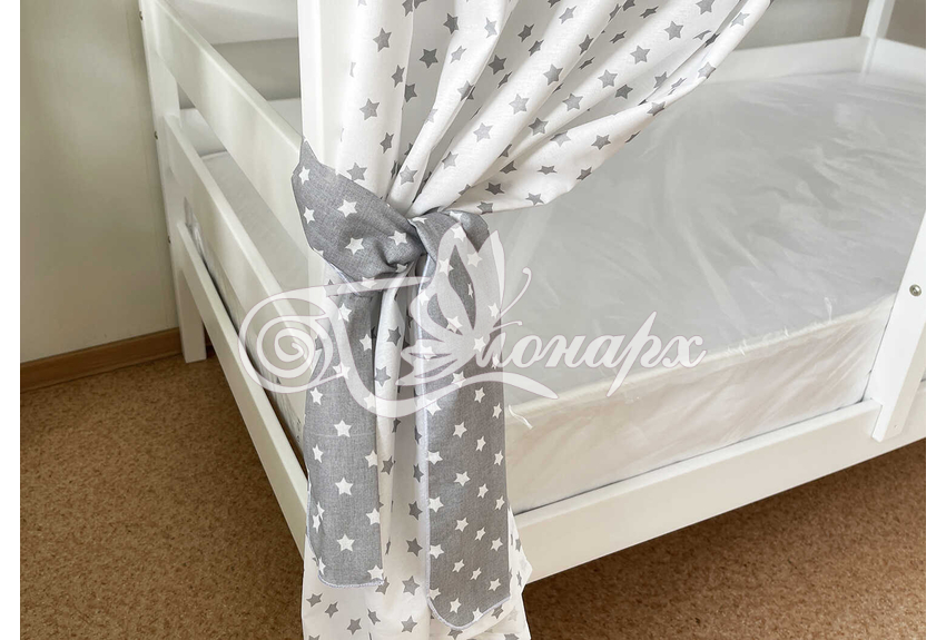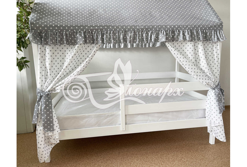 Крыша и шторы для кроватки домика ТД-5 купить в Омске.Теги: комплект в кроватку домик, текстиль для домика, крыша для домика