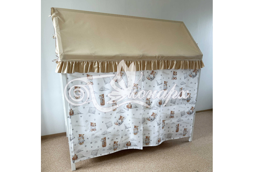Крыша и шторы для кроватки домика ТД-51 купить в Омске.Теги: комплект в кроватку домик, текстиль для домика, крыша для домика