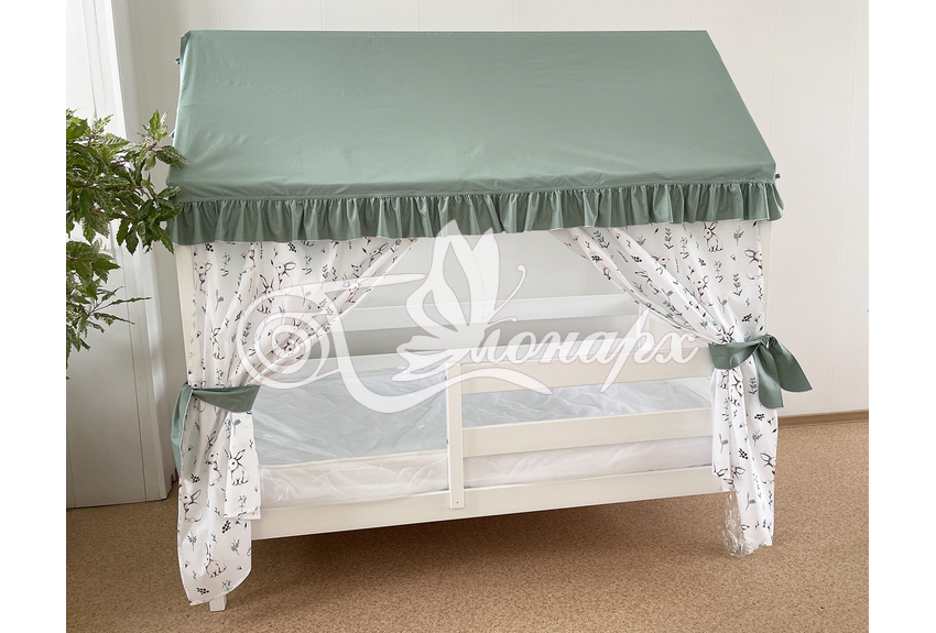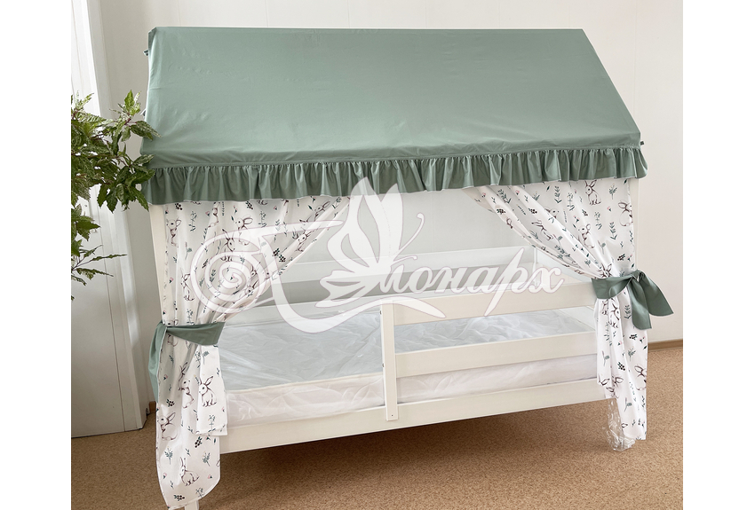 Крыша и шторы для кроватки домика ТД-7 купить в Омске.Теги: комплект в кроватку домик, текстиль для домика, крыша для домика