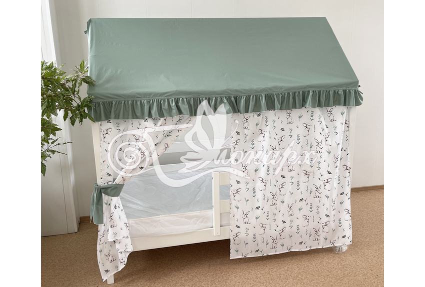 - Крыша текстильная на завязках (10 завязок) для кроватки домика: